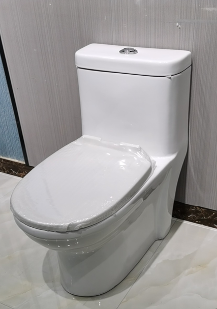 Bồn cầu một khối thiết kế theo phong cách Hiện đại. Nắp đóng êm vận hành nhẹ nhàng êm ái,