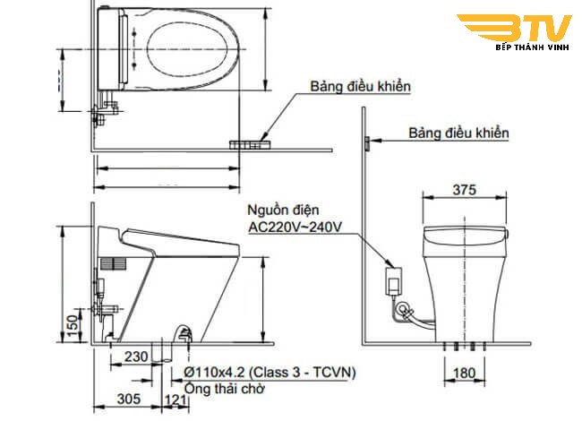 + Đèn bệ ngồi sẻ sáng mờ khi có cảm ứng về sự di chuyển