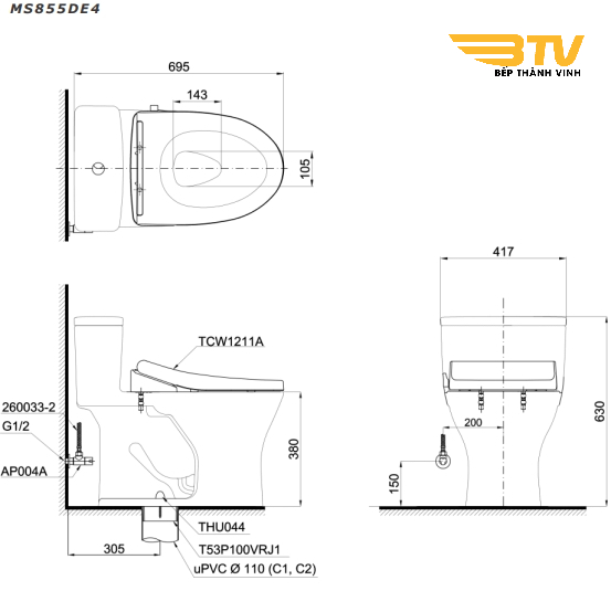 Bạn đang tìm kiếm bồn cầu 1 khối đẹp, chất lượng, TBVS Thành Vinh xin giới thiệu sản phẩm bồn cầu 1 khối toto MS855DE4 với những ưu điểm vượt trội, chắc chắn sẽ khiến bạn hài lòng.