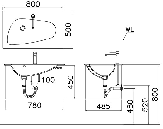 KT lavabo LF5036 : 500 x 800 x 180 mm (dài x rộng x cao)